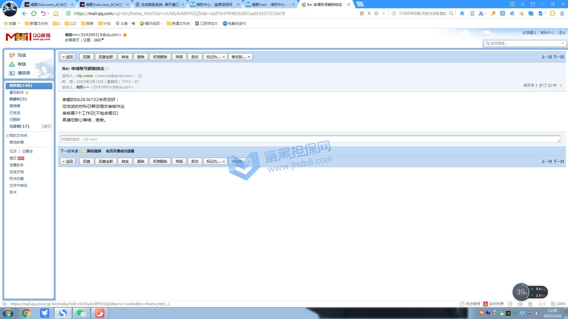 3.用户提交维权申请后资料不齐全,需在一周内补齐鉴黑担保网客服要求的资料,若超过一周时间没有完善维权信息,维权将因资料不全拒绝受理;