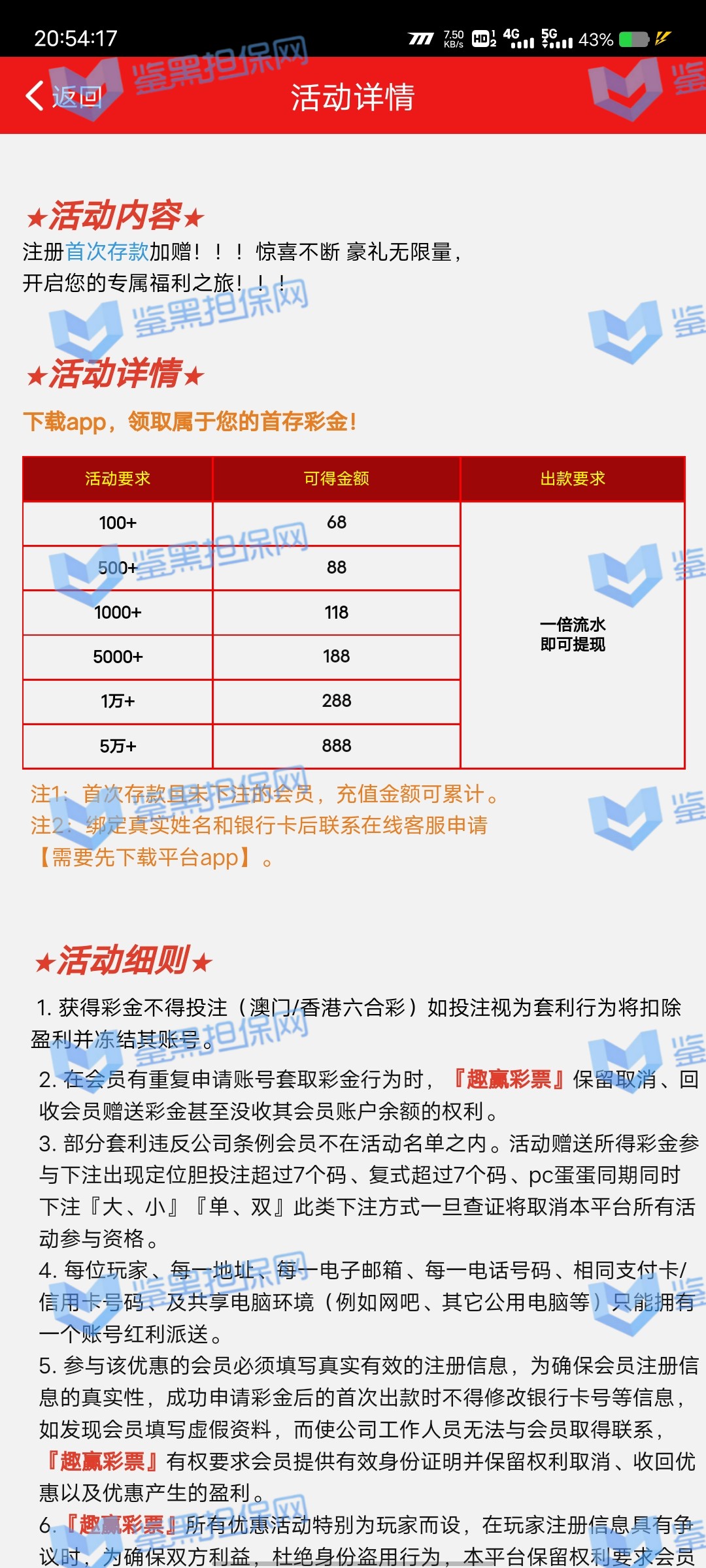 4.用户提交维权需为本人提交,若代替让人发布维权鉴黑担保网将拒绝受理;