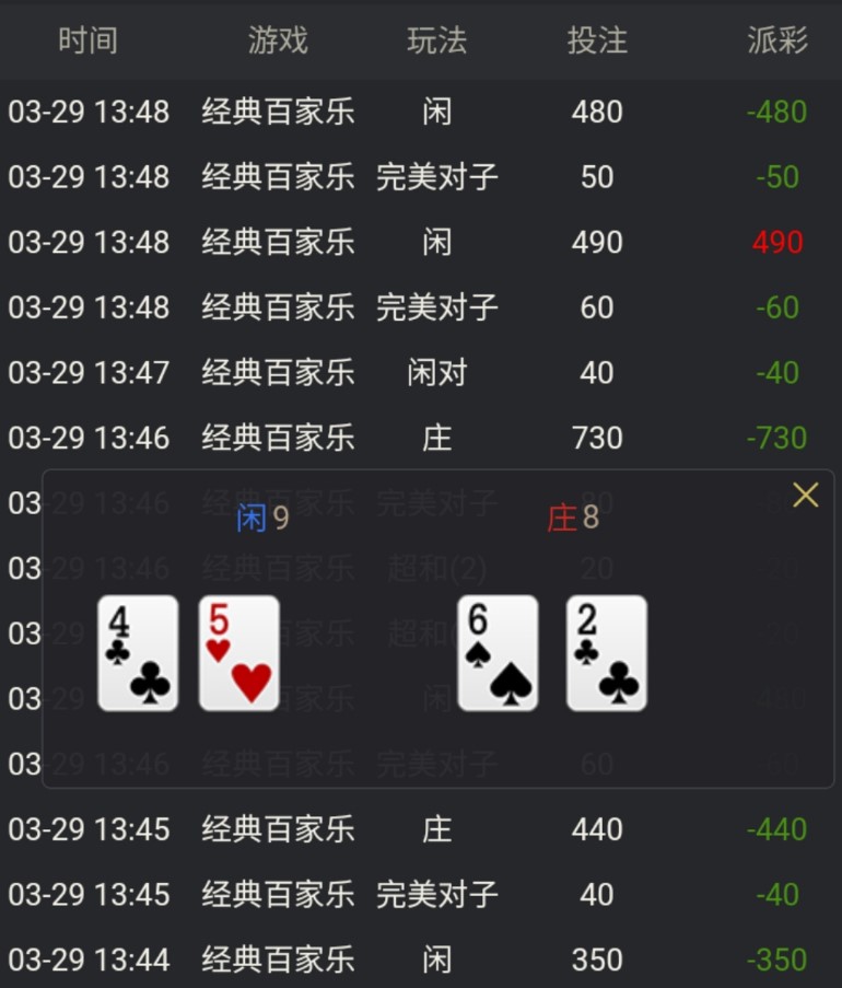第一把就是和局,上来就是和局,嗯,有的时候也不敢下注了吧,