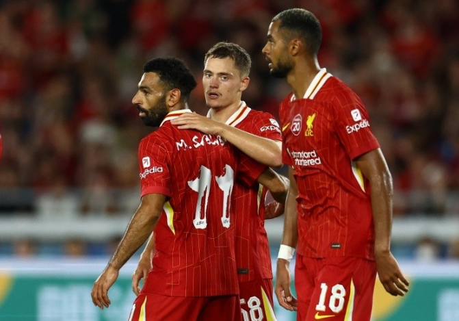 斯洛特的原计划是让经验丰富的技术型球员(麦卡利斯特&萨拉赫)来提供控制力,由年轻球员(凯尔凯兹和弗林蓬)带来速度和变奏,填充“巨人阵”的肌理。