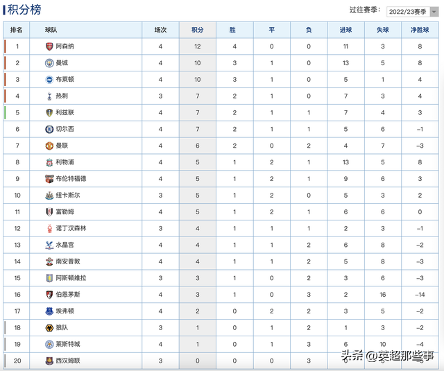 英超最新积分榜:阿森纳逆转豪取4连胜,利物浦9球横扫获首胜